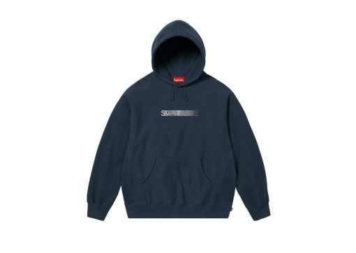 Supreme family is adding a new model to its popular lineup with the Supreme Swarovski Motion Logo Hooded Sweatshirt Navy, now available on sutore. It's released in 18/09/2025 with the FW25SW62-NAVY label.