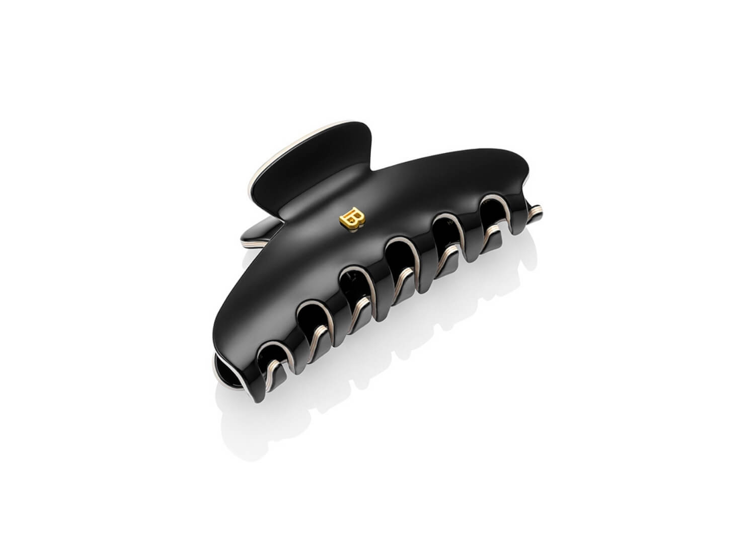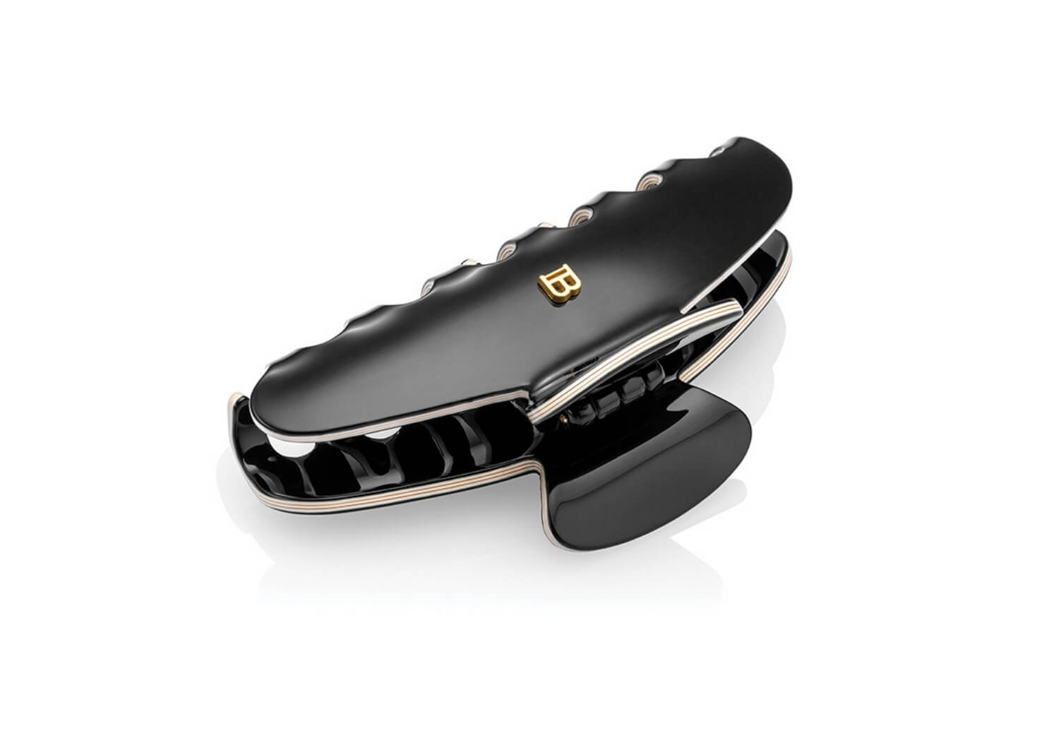 El yapımı olarak dayanıklı selüloz asetattan üretilen bu siyah-beyaz büyük boy claw klips, Balmain’in ikonik 18K altın kaplama “B” logosuyla tasarlanmıştır. Siyah gövdeyi çevreleyen fildişi beyazı detaylar, sofistike bir kontrast oluşturur. Güçlü ama esnek yapısı kalın ve uzun saçlarda üstün tutuş sağlar. Hipoalerjenik malzemesi saç ve saç derisine naziktir. Günlük şıklığı lüks dokunuşla buluşturan bu klips, modern ve zarif bir görünüm sunar.
