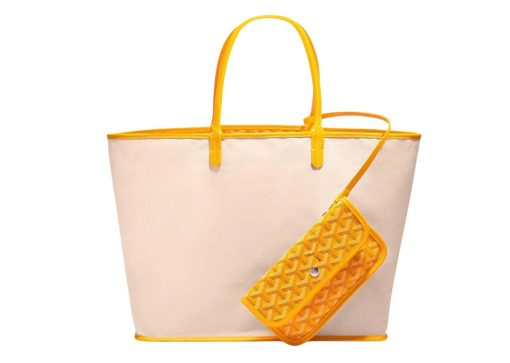 Goyard Saint Louis GM Bag “Yellow”, parlak sarı Goyardine canvas ve deri baskı detaylarıyla enerjik bir stil sunar. 40 × 32 × 14 cm ölçüleri, çift deri sap ve çıkarılabilir iç cep ile günlük kullanımda hem tarz hem genişlik sağlar; reversibl yapısıyla farklı kombinlere kolaylıkla uyum gösterir.
