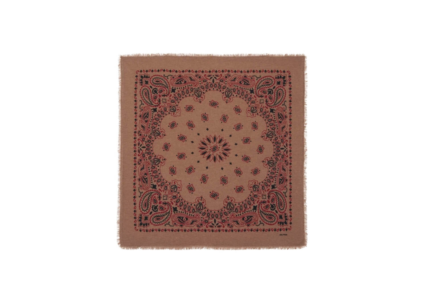 Kujten Grand Bandana Hachiko Bico “Camelo Red”, kaşmir kumaşı ve 2-threads jersey örgü tekniğiyle üretilmiş lüks bir aksesuar modelidir. 92 × 92 cm ölçülerinde kare formda hazırlanan bu bandana, bej-camel taban üzerine canlı kırmızı şerit detaylarıyla tarzınıza güçlü bir ifade sunar.