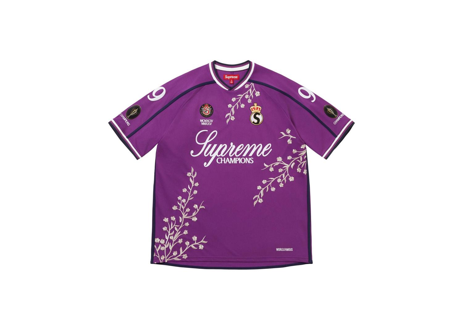 Supreme Floral Soccer Jersey Purple, cesur çiçek deseni ve mor tonuyla sokak stiline sportif bir dokunuş katar. Nefes alabilen, hafif kumaşı ve rahat kesimi gün boyu konfor sunar; futbol forması rahatlığını günlük kullanıma taşır. Konforlu yaka detayı ve özenli baskılar modern bir görünüm sağlarken, Supreme imzası stilinizi öne çıkarır. Unisex tasarım jean, şort veya jogger’larla kolayca kombinlenir. Gardırobunuza enerjik bir renk ve futbol esintisi eklemek için ideal.